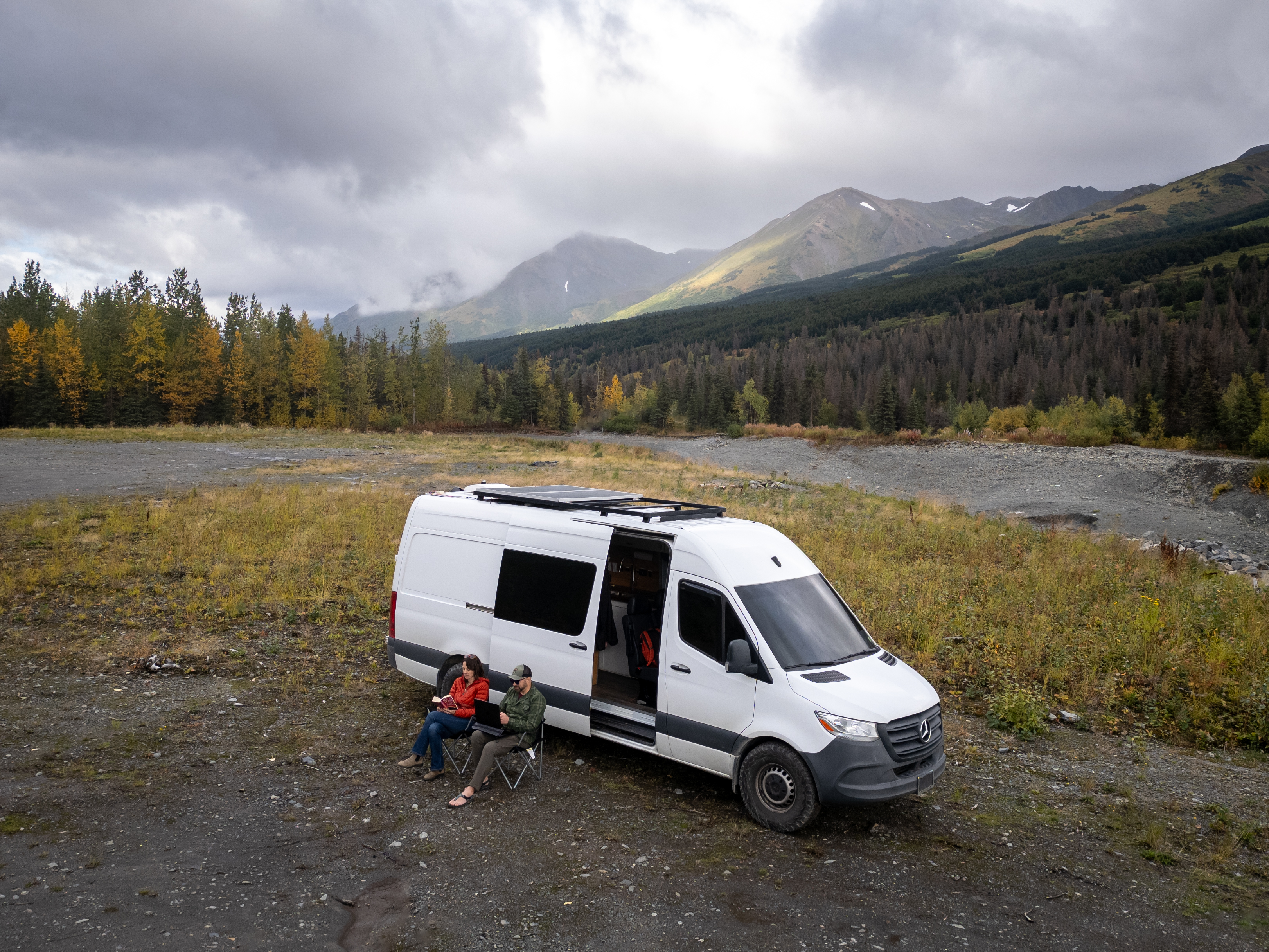 New addition to our fleet in 2024! This 2021 Mercedez Sprinter drives amazing! This is the only van that has 5 seatbelts! It is well equipped with shower, toilet, fridge/freezer. You can cook with the microwave, propane cooktop or camp stove. Powered with shore power, DC-DC charger, and solar panels. This van also has a cellphone signal booster installed to improve your connectivity in the spotty reception area.